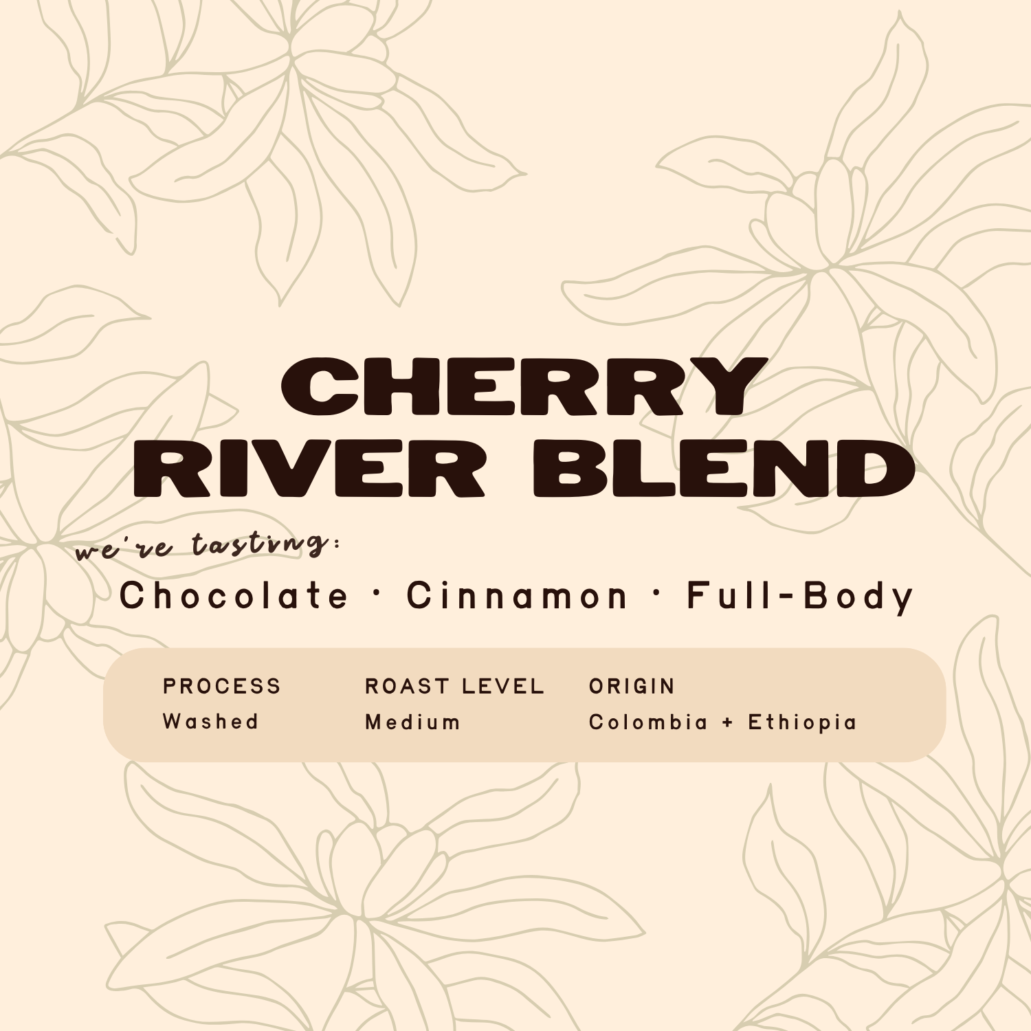 Our signature blend that started it all. Cherry River is a smooth, full-bodied coffee that brings together the rich, comforting notes of colombian chocolate with the bright, spiced character of Ethiopian Yirgacheffe.